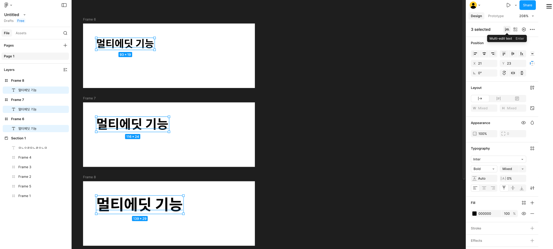 멀티 에딧은 같은 레이어 구조, 레이어명을 가진 대상과 텍스트를 동시에 수정할 수 있는 기능으로써,